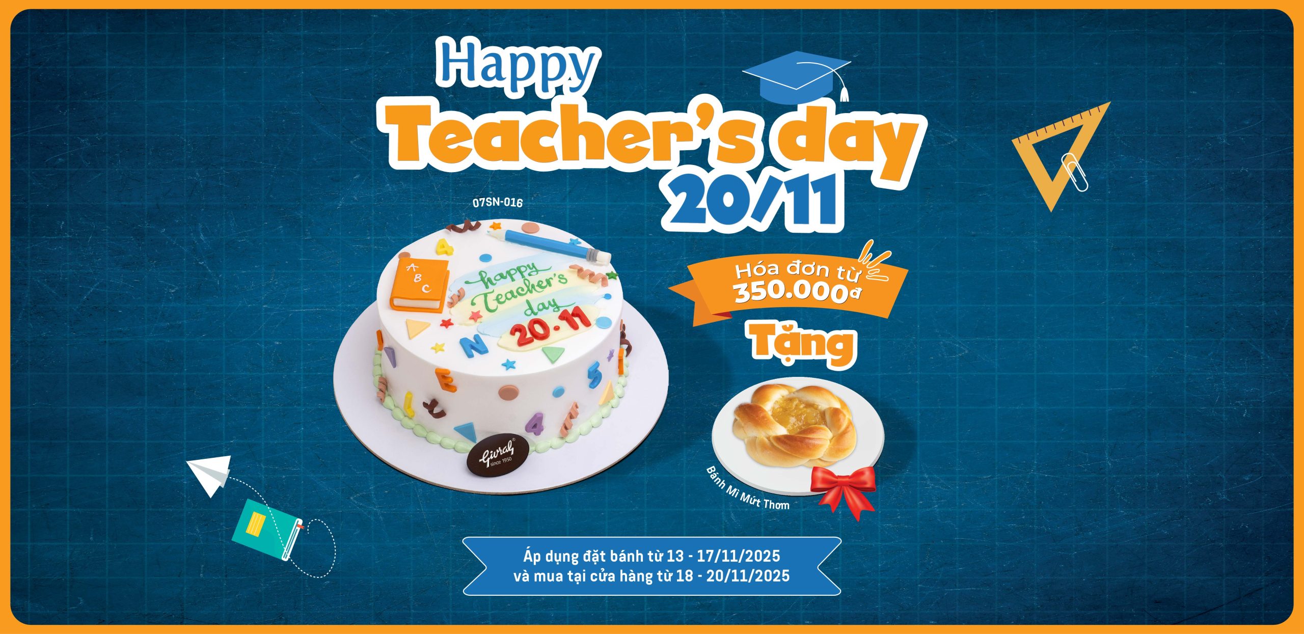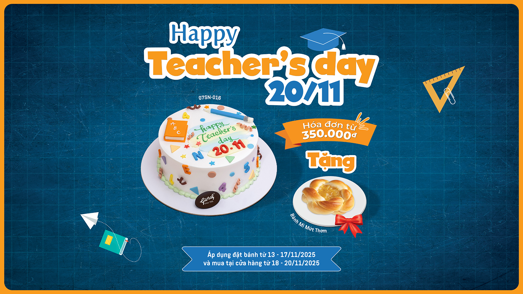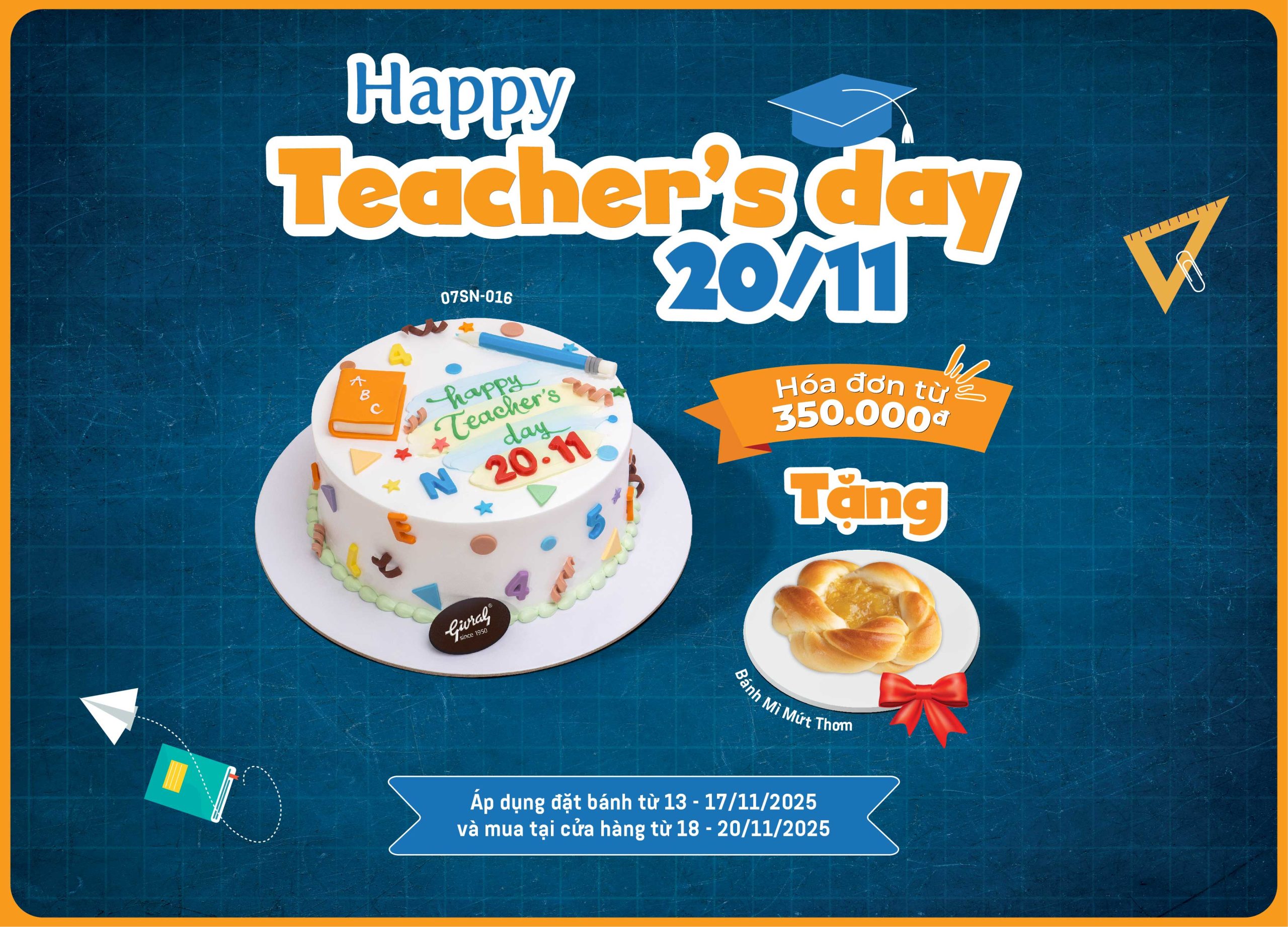 Áp dụng đặt bánh từ 13 - 17/11/2025 và mua tại cửa hàng từ 18 - 20/11/2025