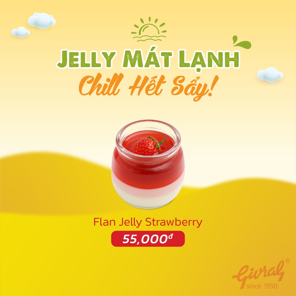 Flan Jelly Strawberry – Sắc hồng dịu nhẹ từ dâu, quyện cùng flan và jelly trong trẻo. Ngọt vừa đủ, khiến tâm hồn như được chạm nhẹ. Một món ngọt nhẹ nhàng, vừa vặn cho những khoảnh khắc thư giãn.